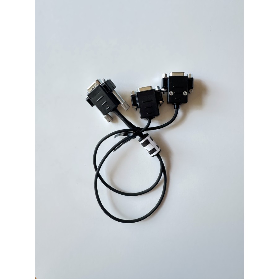 Cable, 0.3 m, Y adapter for connecting 2 items to a Cambridge 302 or GPS-NAV. DB-9m connector for 302 and 2 x DB-9f connectors with nuts for connection to standard PDA cables. 5V power from the 302 is made available on both DB-9f connectors - but the 302 can power only 1 PDA. It is assumed that one of the connectors will be connected to a device that has its own power supply.