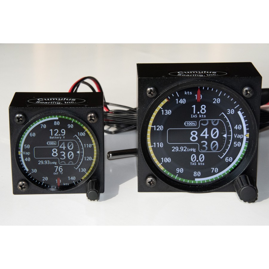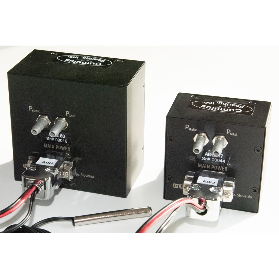 This is a fantastic looking airspeed indicator and altimeter with OAT sensor and simple variometer display. Note that there is no way to connect a Total Energy probe to the ADI2, so the vario is not TE compensated.
