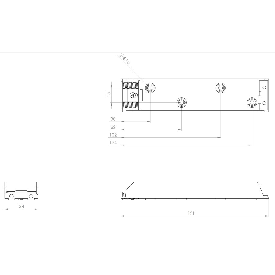 - Dimensions (LxWxH): 151mm x 34mm x 20mm (height 64.5mm including device)