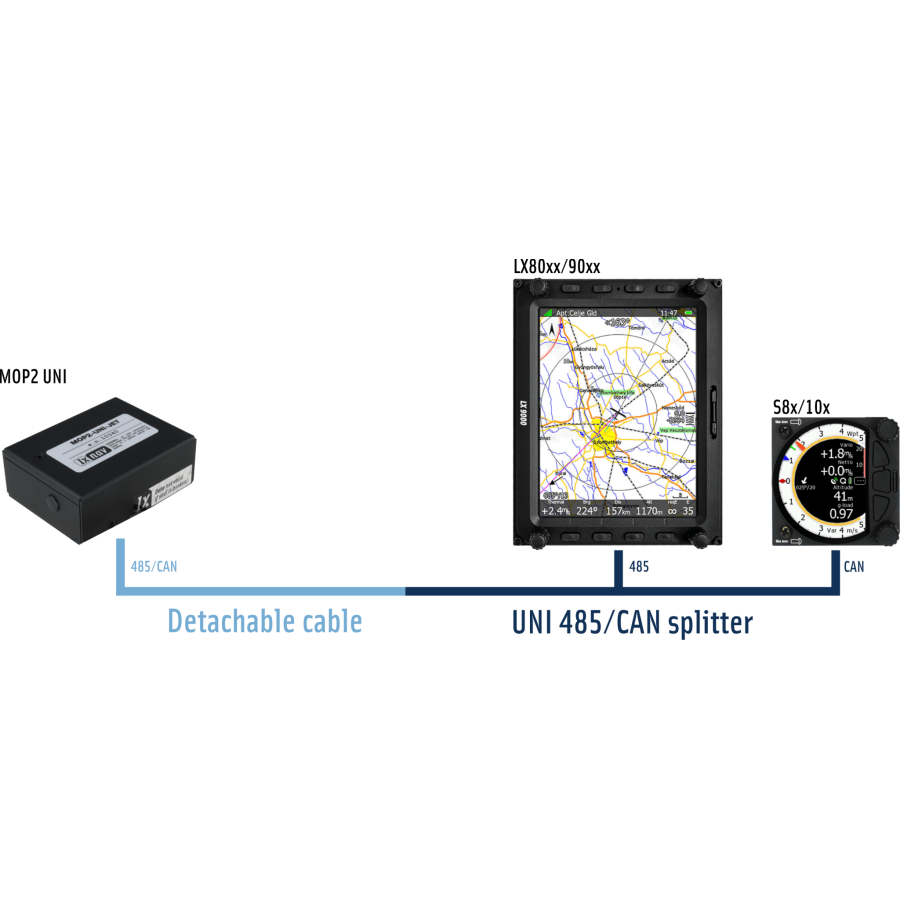 Connects to LX9000, LX8000 and LX8080 via RS485 bus or S-Vario on the CANBus network.