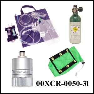 The XCR system is comprised of the cylinder, the axial style primary reducing XCR regulator, 5 ft. of high-quality kink-proof 4mm OD polyurethane tubing, one XCR control-holster with either a MH-3 (FL180) or MH-4 (FL250) Flowmeter with remote on/off valve and an “M” type Oxymizer oxygen conserving cannula. The system can be strapped to your flight-suit or hang gliding XCR Holster harness. There are “D” rings on the corners of the pilot control harness/holster for mounting to an arm, leg, shoulder-strap, uprights or almost any suitable object. Straps not included. All XCR systems include a tote bag for the breathing station(s)