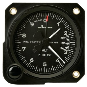 This altimeter is very popular with glider pilots because of its small size. It fits nicely into the small instrument panels found in many sailplanes. It is the only small (57 mm) altimeter for use in a certificated airplane that I am aware of.  However, there may be some compromises due to its small size.  Some pilots find it more difficult to read than other (larger) altimeters.  It seems obvious to me, that the small size would make it more difficult to read, but I have flown with them and I had no problem reading it.  In 2007 Winter changed the 3rd pointer from a short white pointer to a long, thin black pointer with a red colored tip (see photo at right).  That should make the unit easier to interpret in flight.
