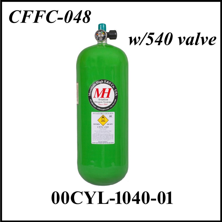 CFFC-048-540 Oxygen Cylinder, Aluminum core with Carbon Fiber Wrap - with CGA-540 Valve and Gauge