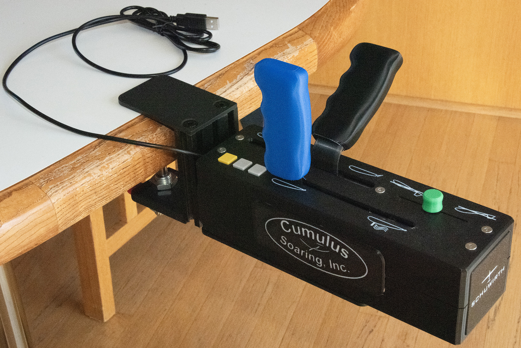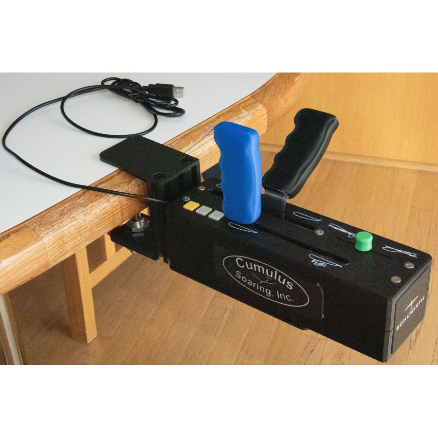 It works great mounted on a sit-in glider simulator rig, or attached to the edge of a table or desk using the optional Condor-Desk-Mount.