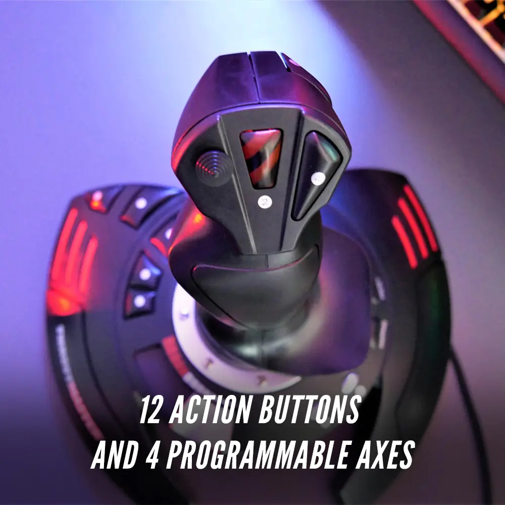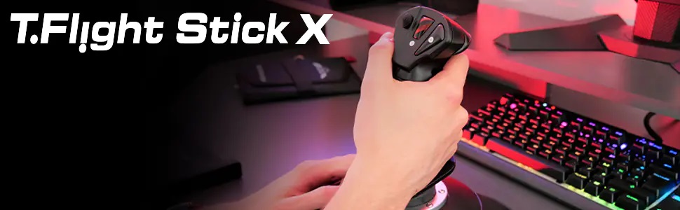 The T.Flight Stick X is a precise, stable and complete joystick for budding pilots who want to improve their virtual flight simulation skills. The Plug & Play joystick is fully compatible with all flight simulation games for PC and features a unique ergonomic design that allows it to adapt to any type of game: dogfights, civil or commercial flights, space adventures, etc.