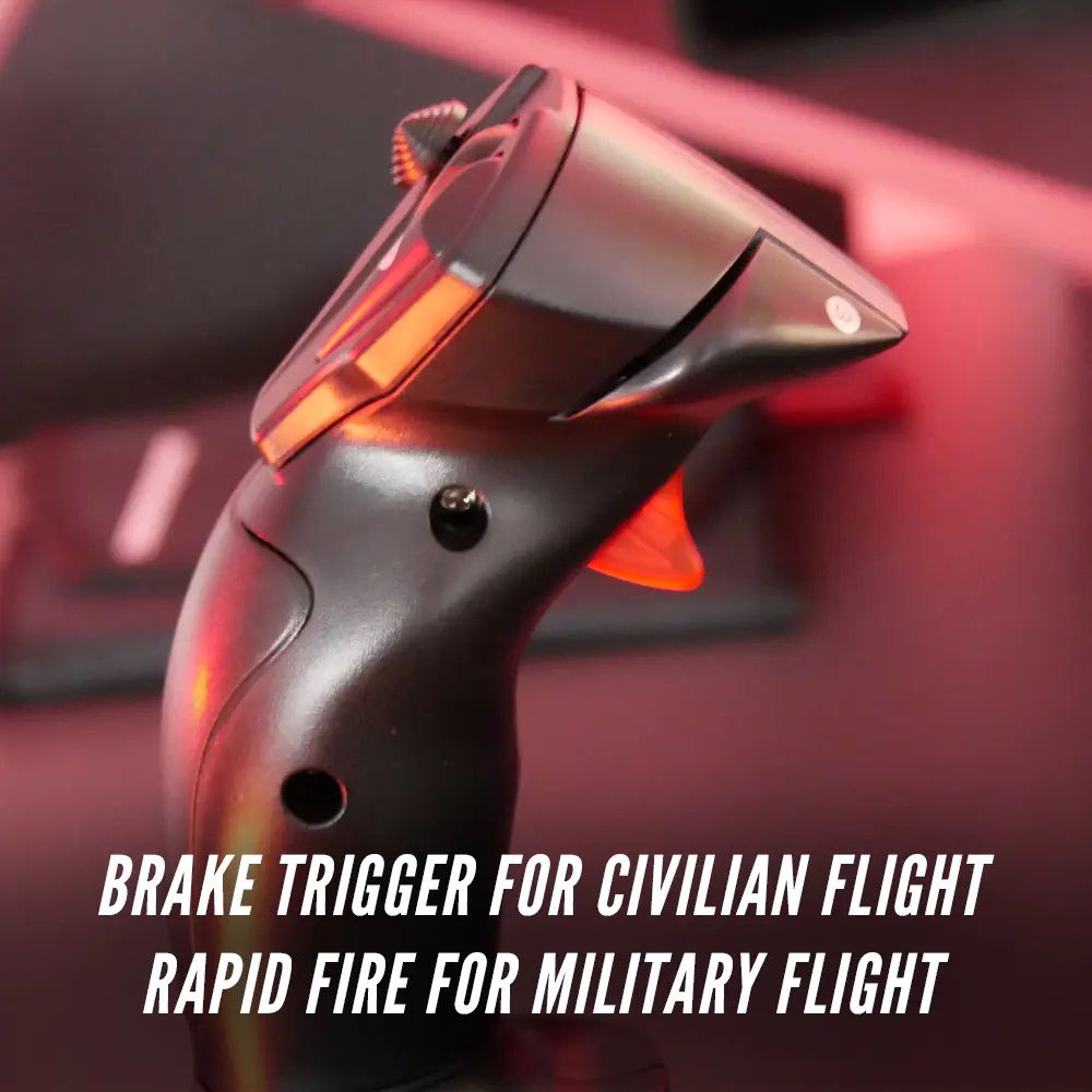 ![]() PROGRAMMABLE ACTION BUTTONS AND AXES Take full advantage of the joystick's capabilities with the 12 action buttons and 4 axes , all extensively programmable, and the integrated throttle. | ![]() TWIST RUDDER A must-have for fast, intuitive and efficient handling in all circumstances, in any type of game. The handle rotation can be locked in place for more realistic flights. | ![]() VERSATILE TRIGGER The brake trigger is perfectly adapted to civil flight, while the rapid-fire option allows for better use in military and space flights. |